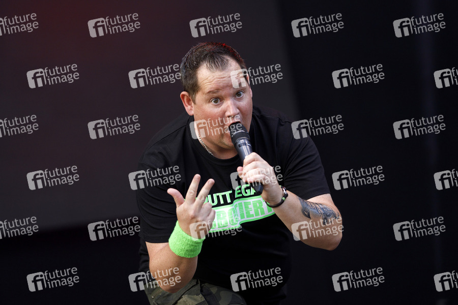 Sabbotage bei seinem Auftritt beim Konzert von Mia Julia im Kulturgarten in der Bonner Rheinaue. Das Bonn Live Kulturgarten Open Air Festival 2020 ist Europas erstes Open Air Festival unter Corona-Auflagen wegen der Covid-19 Pandemie. Bonn, 08.08.2020