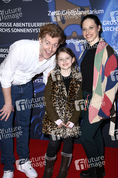 Johannes Heinrichs und Nadja Jo Klapper mit Tochter Mayla bei der Premiere des 360°-Events 'Die große Abenteuerreise durchs Sonnensystem' im Zeiss-Großplanetarium. Berlin, 06.03.2025