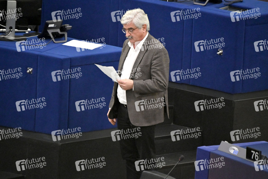 Claude Gruffat bei einer Plenartagung zur Mindestbesteuerungsrichtlinie im Plenarsaal des Europäischen Parlaments. Straßburg, 04.04.2022