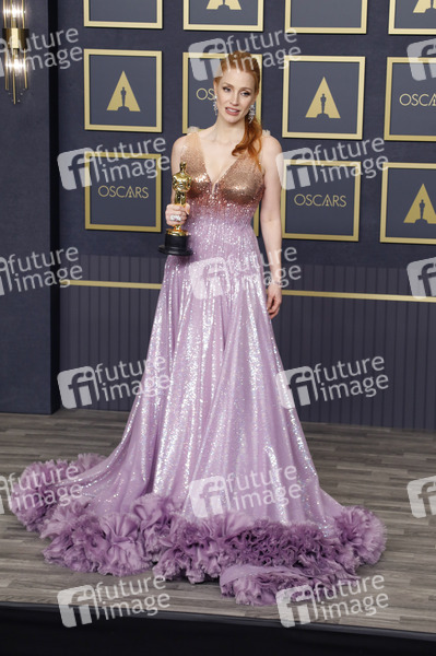 Jessica Chastain mit dem Oscar für die beste Hauptdarstellerin in 'The Eyes of Tammy Faye' im Press Room der Oscar Verleihung 2022 / 94th Annual Academy Awards im Hollywood & Highland Center. Los Angeles, 27.03.2022