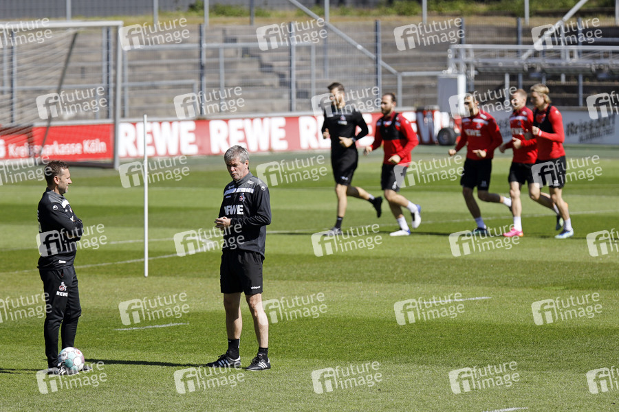 Andre Pawlak, Friedhelm Funkel und Bundesligateam beim Training des 1. FC Köln in der Saison 2020/2021 am Geißbockheim. Köln, 27.04.2021