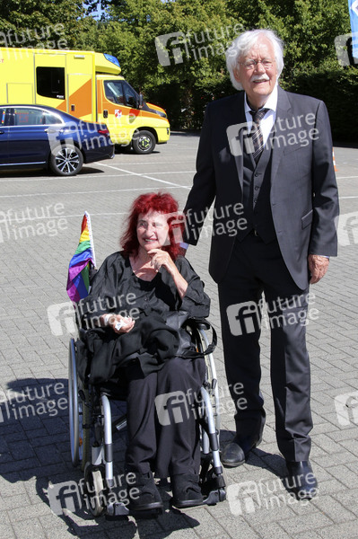 Peggy Parnass und Carlo von Tiedemann bei der Trauerfeier für Uwe Seeler im Volksparkstadion. Hamburg, 10.08.2022