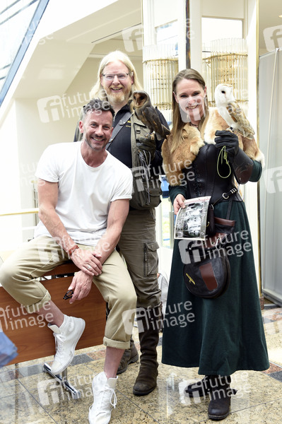Craig Parker mit Falkner Ari und Falknerin Barbara auf der MagicCon 3 im Maritim Hotel. Bonn, 27.04.2019