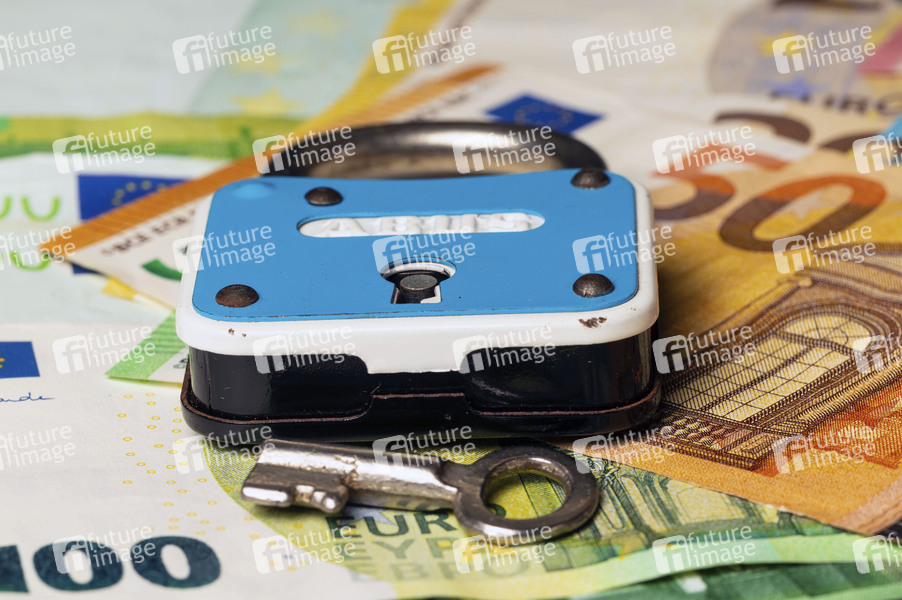 P-Konto, Finanzen, Schulden, Schuldner, private Insolvenz, Sozialstaatsgebot, Sicherung des soziokulturellen Existenzminimums, Guthabenkonto, Kontopfändungsschutz, ZKA, Arbeitsgemeinschaft Schuldnerberatung der Verbände, AG SBV, Bankgebühren, Grundfreibetrag, Freibetrag, Pfändung, Auskehrungskonto, Geld, Euro, €, Banknoten, Geldscheine, Pluskonto, Verbraucherzentrale, Kontoinhaber, Zahlungsprobleme, Kontopfändung, Gläubiger, Verschuldung, Schuldenberater, Schloss, Vorhängeschloss, Existenzminimum, Symbolbild, Themenbild