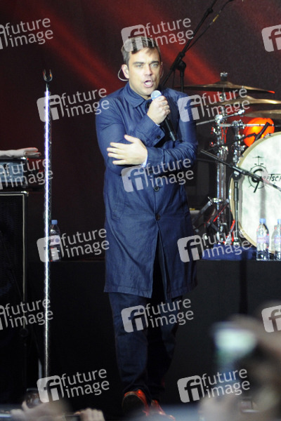 Robbie Williams Gratiskonzert zur Vorstellung seiner kommenden CD 'Reality Killed the Video Star' am Falkplatz vor der Max-Schmeling-Halle in Berlin