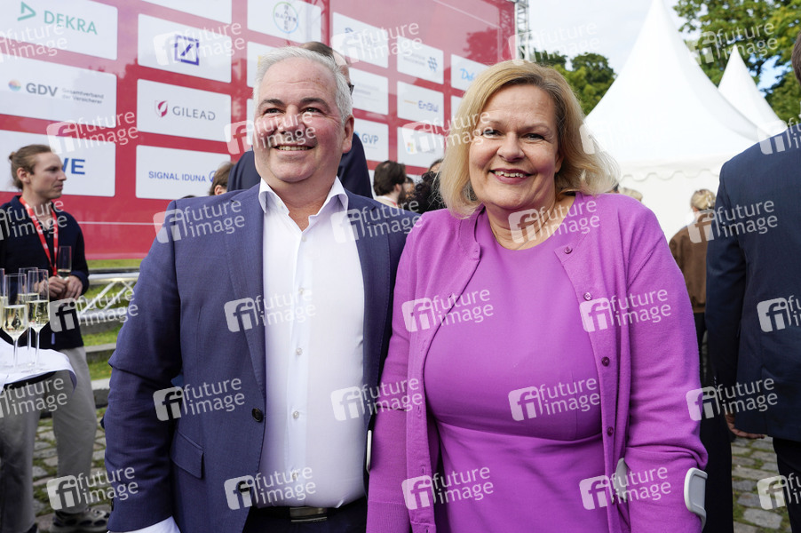 Nancy Faeser mit Ehemann Eyke Grüning beim Hoffest der SPD-Bundestagsfraktion im Tipi am Kanzleramt. Berlin, 03.07.2024