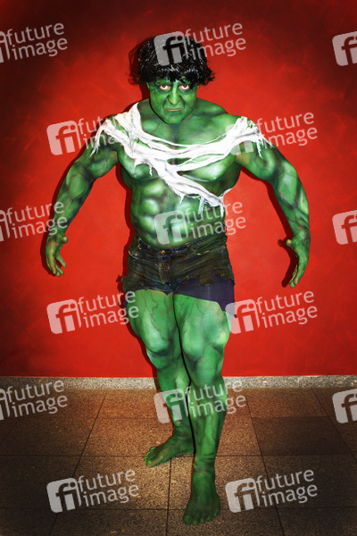 Comics-Bodypainting und Photoshooting mit Olimp-Model Horst und Model Lena im Ruhr Congress Centrum, Bochum. Body Paint Künstler: Jörg Düsterwald