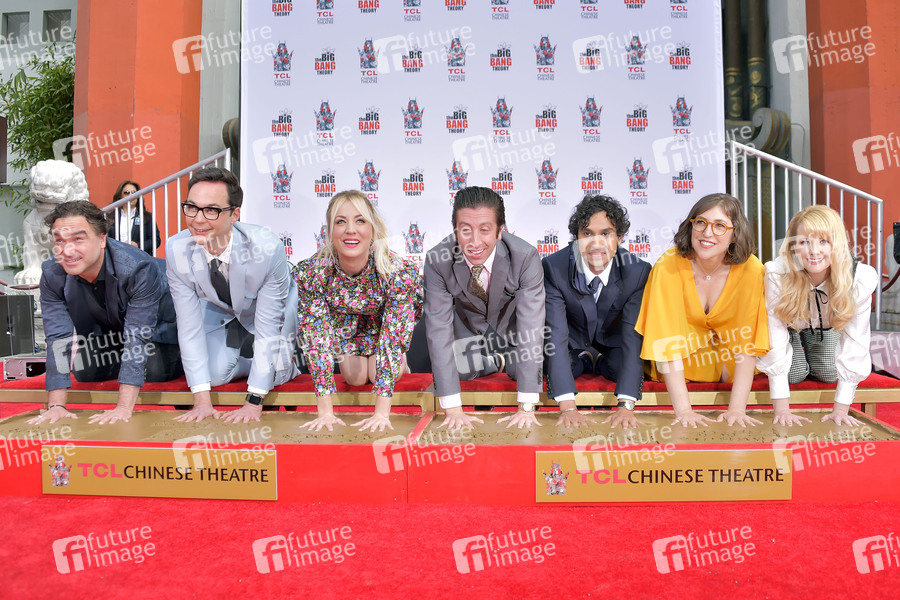 Johnny Galecki, Jim Parsons, Kaley Cuoco, Simon Helberg, Kunal Nayyar, Mayim Bialik und Melissa Rauch bei der Handprints Ceremony am TCL Chinese Theatre Hollywood. Los Angeles, 01.05.2019