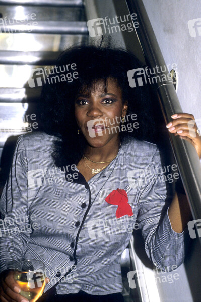 Jaki Graham bei einem Photoshooting in einem Hotel. London, 10.09.1988