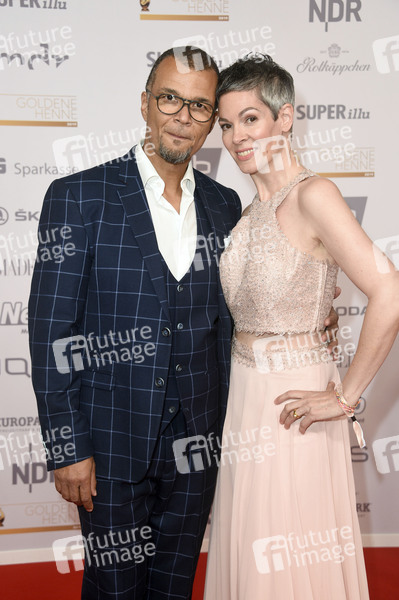 Nikolaus Okonkwo mit Ehefrau Cheryl Shepard bei der 25. Verleihung der Goldenen Henne 2019 in der Leipziger Messe. Leipzig, 20.09.2019