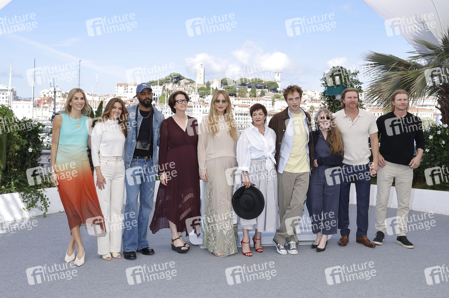 Molly Smith, Justine Ciarrocchi, LaKeith Stanfield, Andrea Calderwood, Jennifer Lawrence, Lynne Ramsay, Robert Pattinson, Sissy Spacek, Trent Luckinbill und Thad Luckinbill beim Photocall zum Kinofilm 'Die, My Love' auf dem Festival de Cannes 2025 / 78. Internationale Filmfestspiele von Cannes am Palais des Festivals. Cannes, 18.05.2025