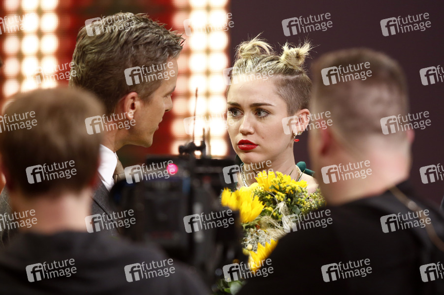 Markus Lanz und Miley Cyrus in der ZDF/ORF Fernsehshow 'Wetten, dass..?' live aus der Halle Messe. Halle, 09.11.2013