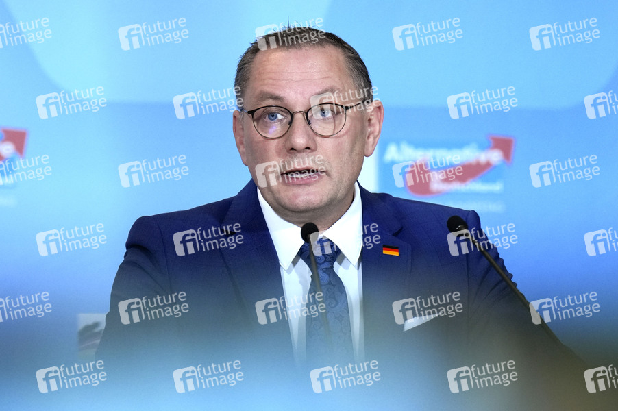 Tino Chrupalla beim Pressestatement zur Fraktionssitzung der AfD-Bundestagsfraktion im Reichstagsgebäude. Berlin, 17.12.2024
