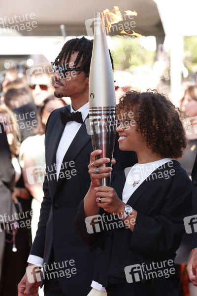 Arnaud Assoumani und elia Barbosa bei der Premiere des Kinofilms 'Marcello Mio' auf dem Festival de Cannes 2024 / 77. Internationale Filmfestspiele von Cannes im Palais des Festivals. Cannes, 21.05.2024