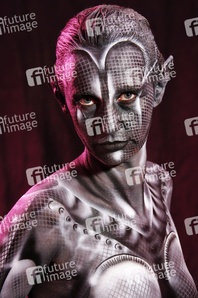 Bodypainting, Erotik, Frau, nackt, drinnen, weiblich, Monster, Außerirdische, Alien, Echse, Körperkunst, Kunst, Malerei, monochrom, erotic, woman, nude, indoor, female, monochrome, lizard, body art, body painting