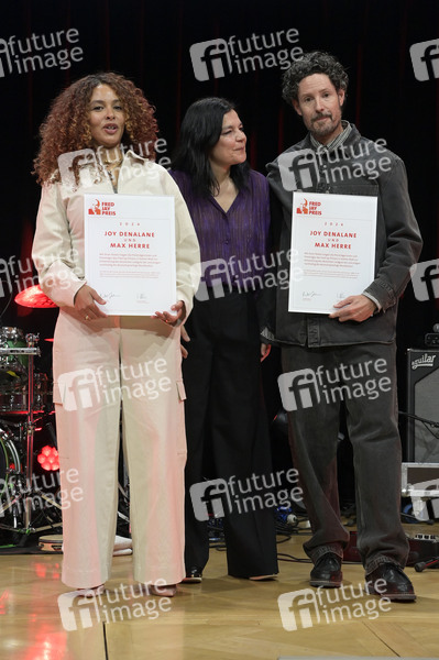 Joy Denalane, Jasmin Tabatabai und Max Herre bei der Verleihung des Fred Jay Preises 2024 im bcc Berlin Congress Center. Berlin, 14.05.2024