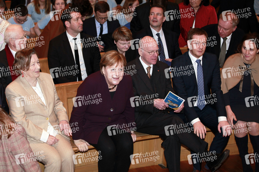Ingrid Biedenkopf, Angela Merkel, Norbert Lammert, Michael Kretschmer und Annett Hofmann bei der Festveranstaltung '30 Jahre Friedliche Revolution und Neugründung des Freistaates Sachsen - 90 Jahre Kurt Biedenkopf' in der Frauenkirche. Dresden, 28.01.2020