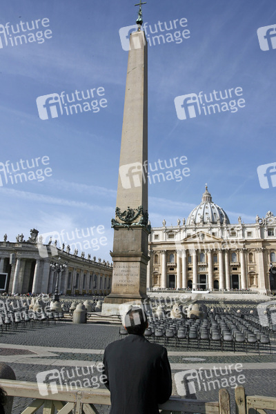 wurde von Gian Lorenzo Bernini zwischen 1656 und 1667 unter Papst Alexander VII. (1655–1667) vor dem Petersdom in Rom angelegt, der Petersplatz ist Teil des Territoriums der Vatikanstadt, die Kolonnaden bilden die Grenze zwischen Vatikanstadt und Italien, ca. 35.300 m² groß, Peterskirche, Petersdom, Obelisk