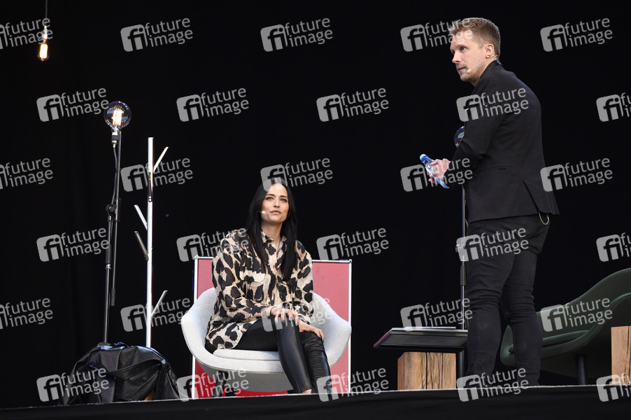 Oliver Pocher mit Ehefrau Amira Pocher bei der ersten Autokultur-Veranstaltung 'Die Pochers hier' auf dem Schützenplatz. Die Besucher verfolgen unter Berücksichtigung klarer Hygiene-Vorschriften während der Corona-Krise den Auftritt aus dem Auto. Hannover, 07.05.2020