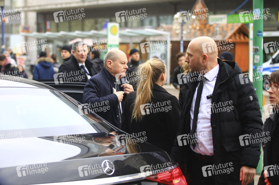 Olaf Scholz beim Besuch des Tatorts nach dem Anschlag auf dem Magdeburger Weihnachtsmarkt. Magdeburg, 21.12.2024