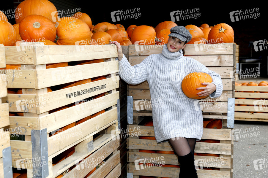 Prominenz, Celebrity, Celebrities, Fotoshooting, Fototermin, Unterhaltung, Entertainment, Halloween, Kürbis, Partyvorbereitungen, Bauernhof, Model, Moderatorin