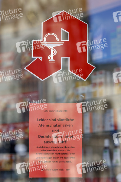 Eine Apotheke im Agnesviertel, in der Atemschutzmasken und Desinfektionsmittel ausverkauft sind. Köln, 16.03.2020