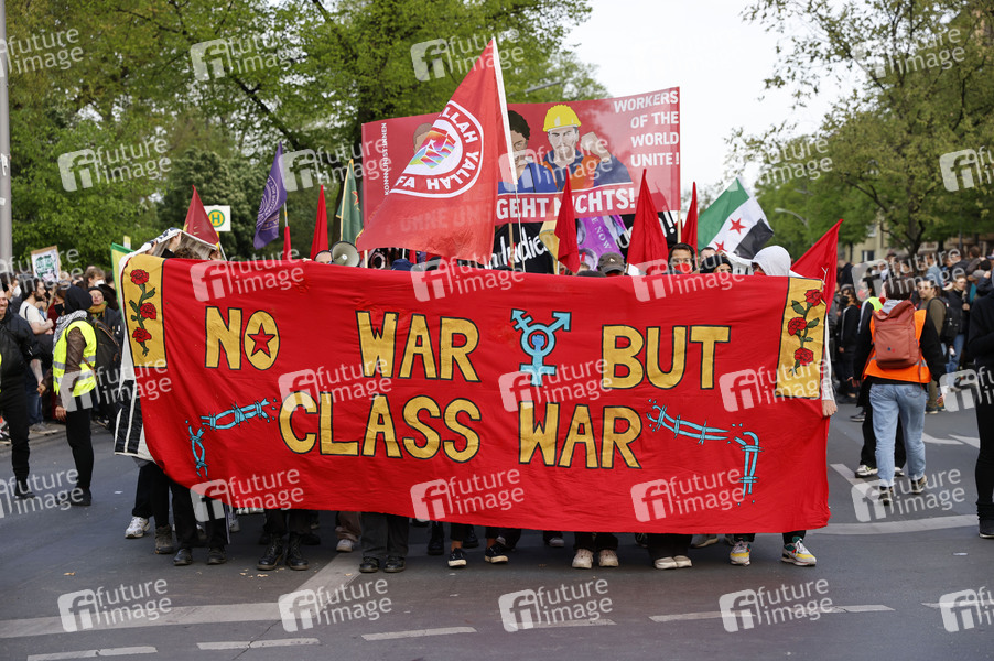 Demonstranten bei der Revolutionären 1.Mai-Demo unter dem Motto 'Revolutionärer Erster Mai: Yallah Klassenkampf - No war but classwar!' von Neukölln nach Kreuzberg. Berlin, 01.05.2022
