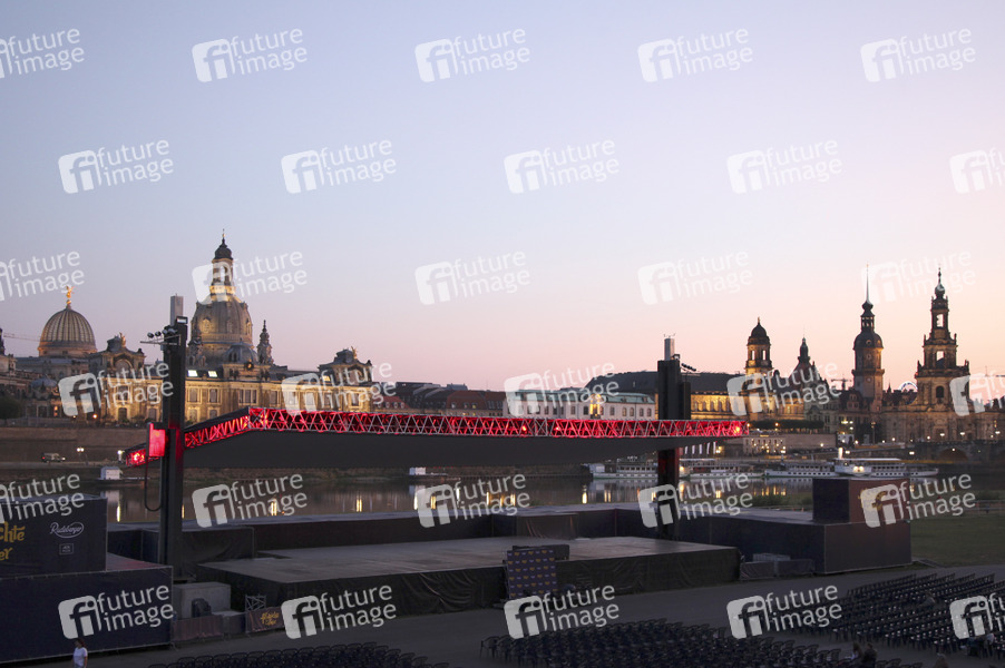 Open Air Kino vor der Skyline von Dresden während der Premiere des Kinofilms 'Und der Zukunft zugewandt' im Rahmen der Filmnächte am Elbufer. Dresden, 22.08.2019