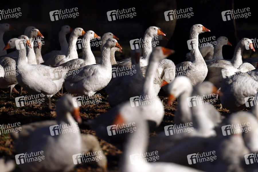 St. Martin, Martinsgans, Martinsgänse, Gans, Gänse, Mastgans, Mastgänse, Freiland, Freilandhaltung, Bio-Fleisch, artgerechte Haltung, Geflügel, Geflügelfleisch, Weihnachtsgans, Weihnachtsgänse, Gansbraten, Herde, Herdentrieb, Gänsemast, Fleisch, Fleischproduktion, Federn, Mästen, Weidemast, Zuchtgans, Zuchtgänse, Haustier, Haustiere, Symbolbild, Symbolfoto
