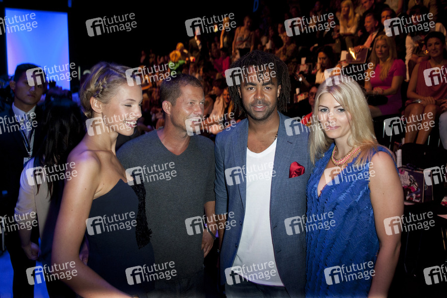 Svenja Holtmann, Til Schweiger und Patrick Owomoyela mit Freundin Josipa bei der Laurel Fashion Show im Rahmen der Mercedes-Benz Fashion Week Berlin Fruehjahr/Sommer 2014. Berlin, 04.07.2013