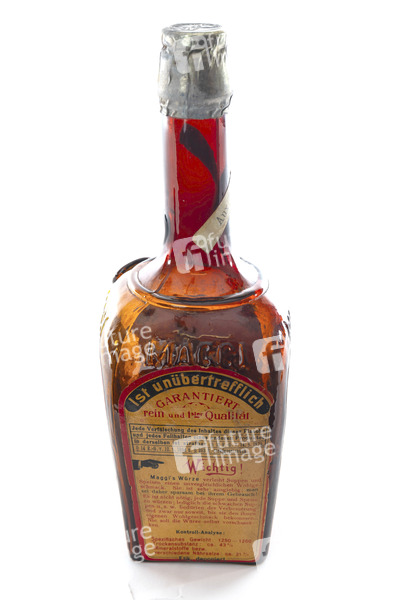 Maggi ist ein nach seinem Gründer Julius Maggi benanntes Schweizer Unternehmen der Lebensmittelindustrie, das vor allem für Instantsuppen, Brühwürfel, Flüssigwürze, Fertigsaucen und Fertiggerichte bekannt ist. Im Bild eine historische Flasche Maggi Würze. (Symbolfoto, Themenfoto)
