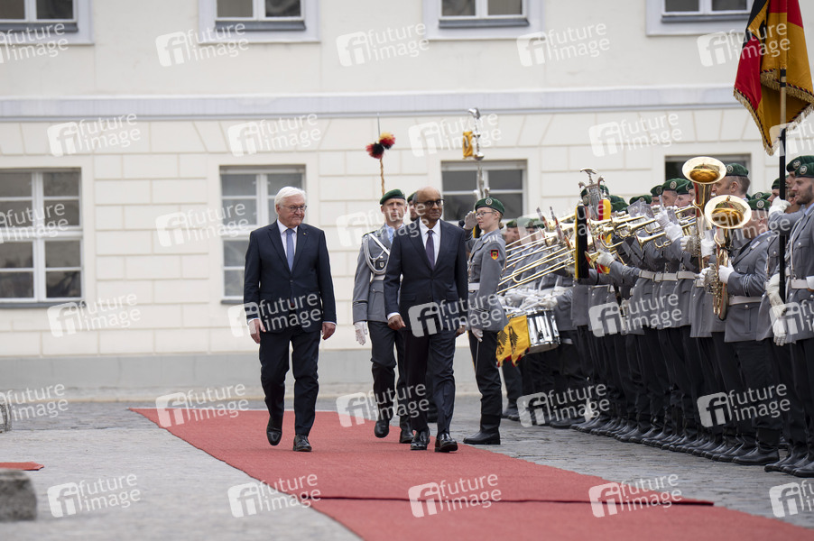 Frank-Walter Steinmeier und Tharman Shanmugaratnam beim Empfang des Präsidenten von Singapur mit militärischen Ehren im Schloss Bellevue. Berlin, 04.06.2025