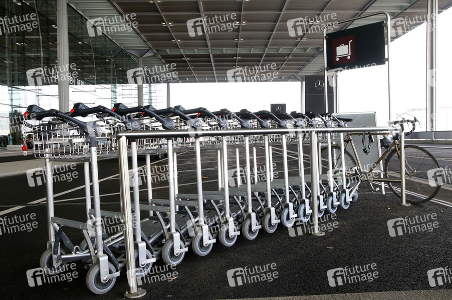 Kofferkulis . Der Flughafen Berlin-Brandenburg Willy Brandt ist 14 Tage nach seiner Eröffnung und dem Corona-Teil-Lockdown nicht ausgelastet. Durch die Corona-Pandemie ist der Flugverkehr weltweit dramatisch eingebrochen. Schönefeld, 14.11.2020