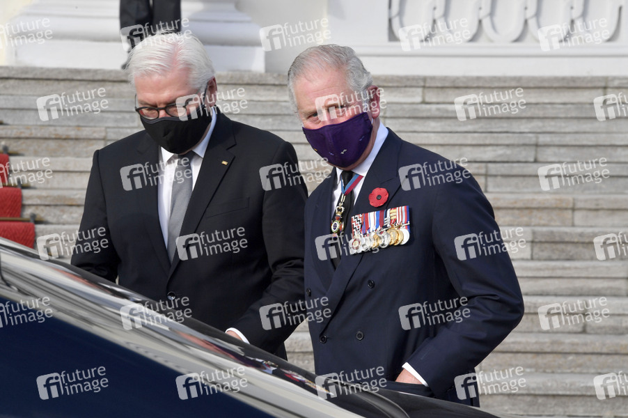 Frank-Walter Steinmeier und Prinz Charles beim Fototermin zum Empfang beim Bundespräsidenten im Schloss Bellevue, anlässlich des Besuchs der Gedenkfeier zum Volkstrauertag. Berlin, 15.11.2020
