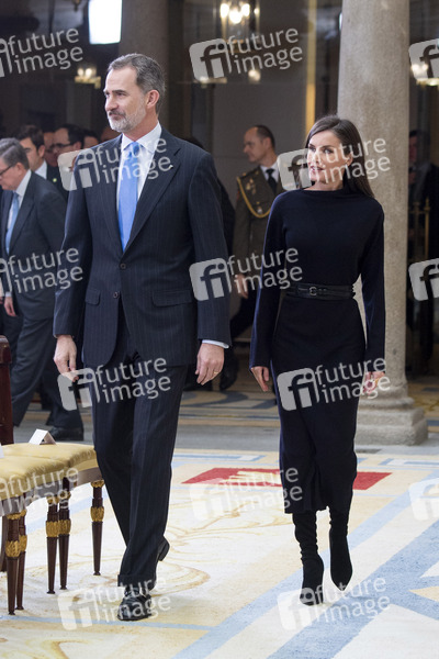 König Felipe VI. von Spanien und Königin Letizia von Spanien bei der Verleihung der Premios Nacionales de Investigación 2019 im Palacio del Pardo. Madrid, 17.02.2020