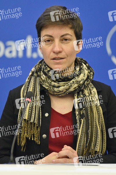Ska Keller beim Pressebriefing der Fraktion Die Grünen/Europäische Freie Allianz im Europäischen Parlament. Straßburg, 05.04.2022
