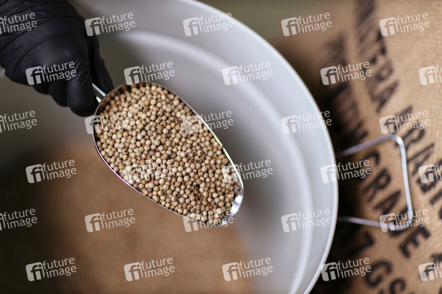 Gewürze, Gewürz, weißer Pfeffer, echter Pfeffer, weisse Pfefferkörner, Frucht des schwarzen Pfeffers, Pfefferstrauch, Piperin, Covid19, Covid-19, Corona, Corona-Virus, Coronavirus, Coronaviren, Corona-Viren, Heilmittel, Vorbeugung, Hauspotheke, Piper Nigrum, Aroma, aromatisch, Indonesien, Organic, Pfeffer, Spices, Sulawesi, Protein S, Hauptprothease, Immunsystem, Abwehrkräfte, Gesundheit, Heilgewürz, scharf, Gewürzhandel, Bio-Pfeffer, indonesischer Pfeffer, Symbolbild, Symbolfoto