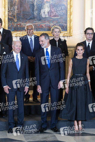 Joe Biden, Felipe von Spanien, António Costa, Ursula von der Leyen, Letizia von Spanien und Stevo Pendarovski beim Fototermin zum Gala Dinner anlässlich des Treffens der Nato-Staats- und Regierungschefs im Palacio Real. Madrid, 28.06.2022