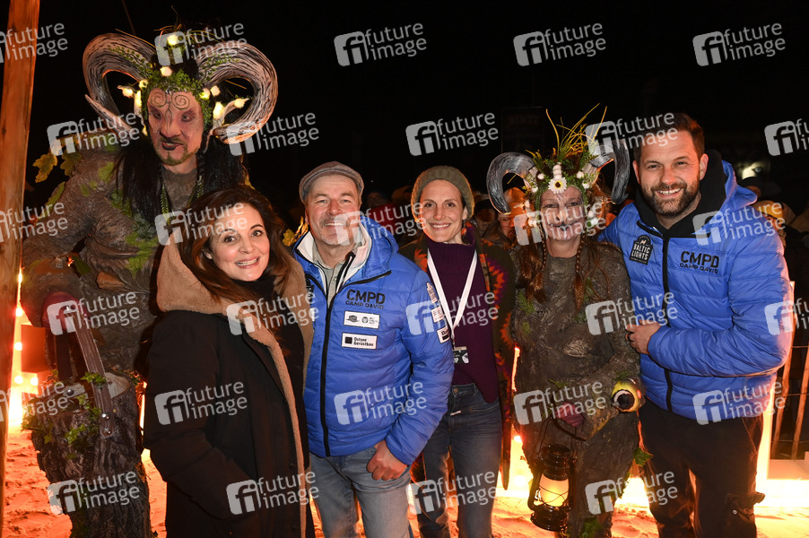 Enrico Lein, Elisabeth Lanz, Till Demtroeder, Barbara Lanz, Claudia Jungesbluth und Matthias Killing beim Opening der Baltic Lights 2025 mit Fackellauf an der Seebrücke Heringsdorf. Heringsdorf, 28.02.2025
