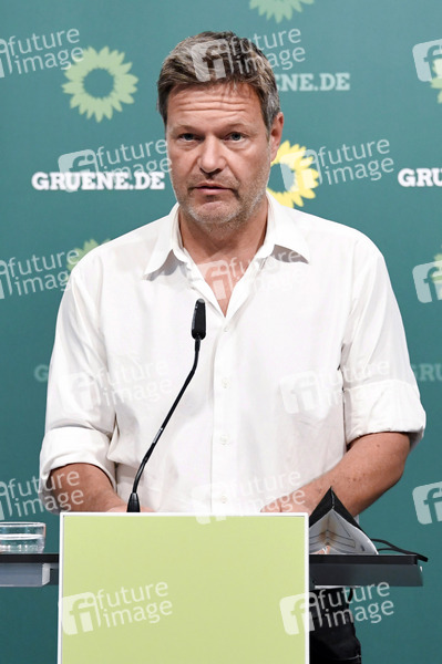 Robert Habeck bei einer Pressekonferenz nach Beratungen des Parteirats Bündnis 90/Die Grünen zum Umgang mit dem Parteimitglied Boris Palmer (Oberbürgermeister Tübingen) in der Heinrich-Böll-Stiftung. Berlin, 14.06.2021