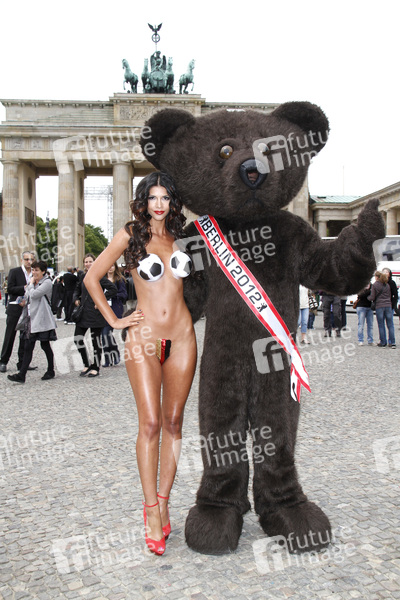 Micaela Schaefer, Model, Bodypainting, Erotik, Frau, Mädchen, nackt, draußen, weiblich, Körperkunst, Kunst, Malerei, Fußball Europameisterschaft, EM 2012, Berliner Bär, erotic, woman, girl, nude, outdoor, female, body art, body painting, European Football Championship, Berlin Bear