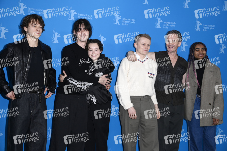 Conrad Khan, Earl Cave, Bella Ramsey, George Jaques, Neil Patrick Harris und Jasmine Elcock beim Photocall zum Kinofilm 'Sunny Dancer' auf der Berlinale 2026 / 76. Internationale Filmfestspiele Berlin im Hotel Grand Hyatt. Berlin, 13.02.2026