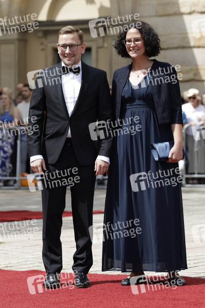 Christopher Süss und Luisa Funke-Barjak bei der Eröffnung der 113. Richard-Wagner-Festspiele 2025 mit der Neuinszenierung von 'Die Meistersinger von Nürnberg' im Bayreuther Festspielhaus. Bayreuth, 25.07.2025
