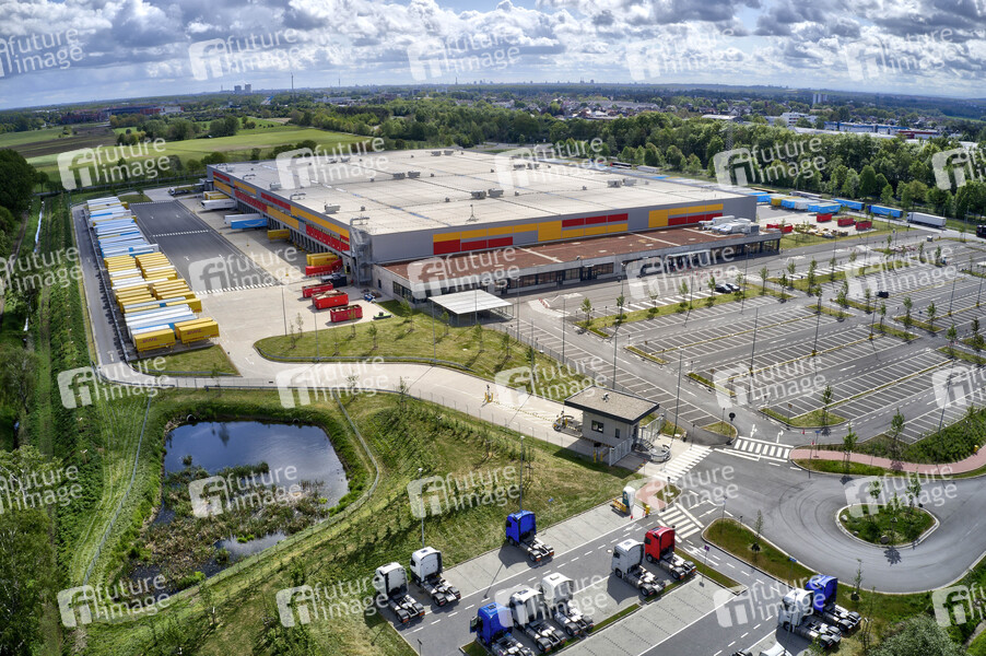 Amazon Logistik HAJ8, Logistikzentren, Lager, Versandzentrum, Luftaufnahme, Unternehmen, Versandhändler, Onlinehandel, Onlineversandhändler, Marktführer des Handels im Internet, Amazon.com. Marktmacht, Wirtschaft, Verteilzentrum, Sortierhallen