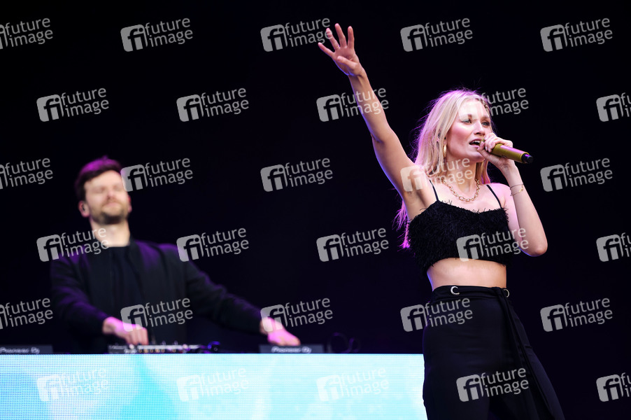 Daniel Grunenberg und Carolin Niemczyk von Glasperlenspiel live beim Autokultur-Konzert auf dem Schützenplatz. Hannover, 30.05.2020