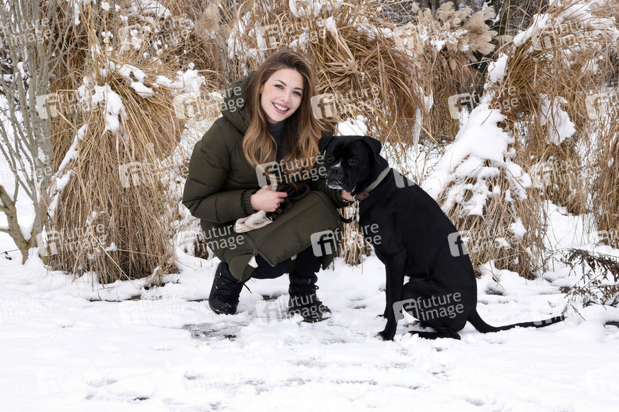 Lena Meckel mit ihrem Hund Ludwig beim Winterspaziergang im Ostpark. München, 07.01.2021