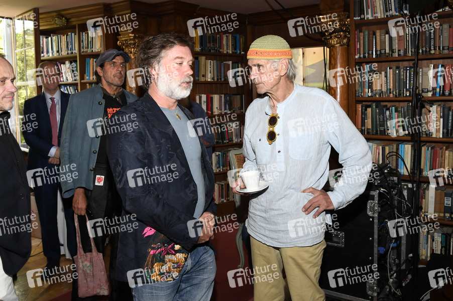 Rufus Wainwright und Jeremy Irons beim Pressegespräch zur amfAR Gala 2025 in der Bibliothek im Schloss Leopoldskron. Salzburg, 24.08.2025