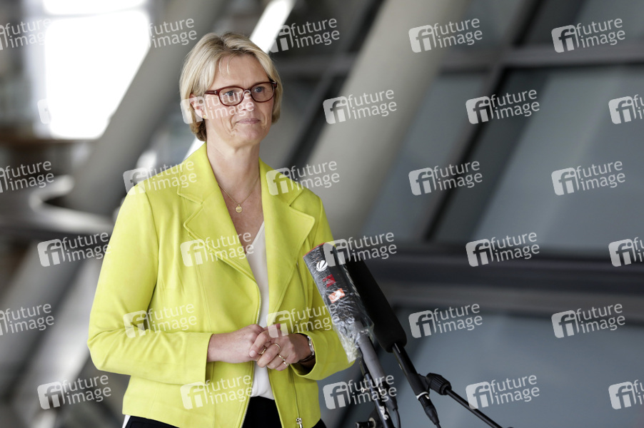 Anja Karliczek bei einem Statement am Rande der 234. Sitzung des Deutschen Bundestages im Reichstagsgebäude. Berlin, 11.06.2021
