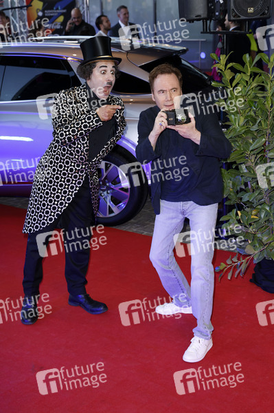 Michael Bully Herbig mit Albert de Paris als Charlie Chaplin bei der Verleihung des 25. Radio Regenbogen Award 2025 in der Europa-Park Arena. Rust, 04.04.2025