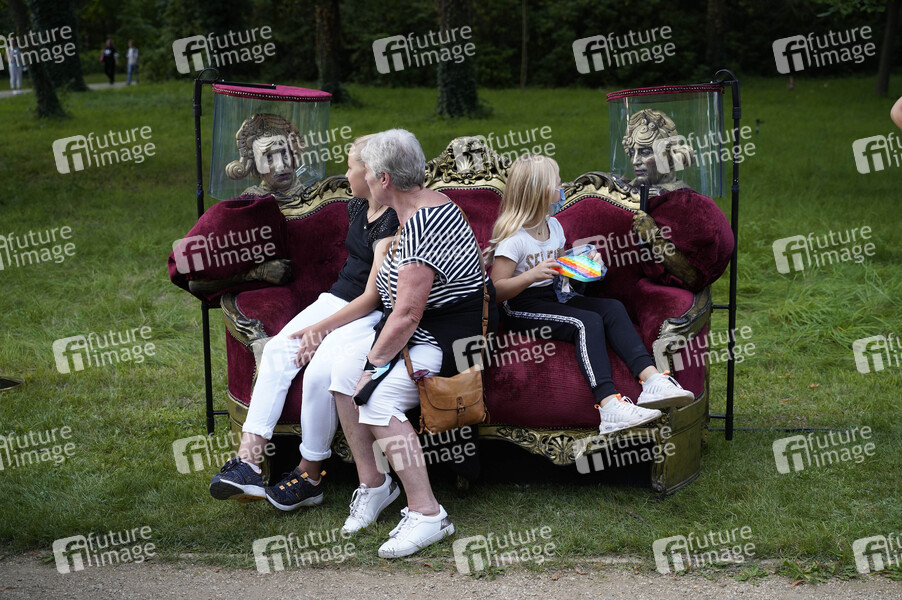 Die lebende Couch bei der Potsdamer Schlössernacht 2021 im Schlosspark Sanssouci. Potsdam, 21.08.2021